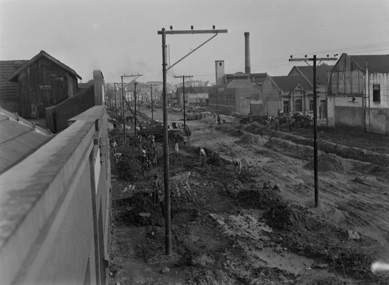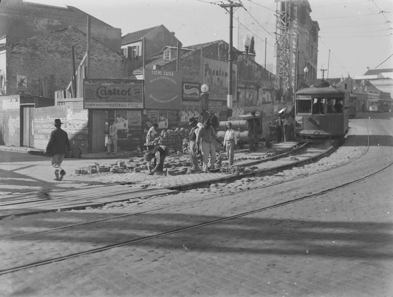 Calçamento de rua – Trabalhadores e bonde
