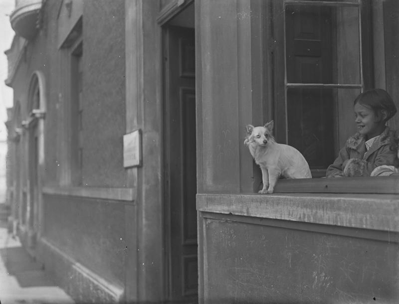 Cachorrinho e meninas janela